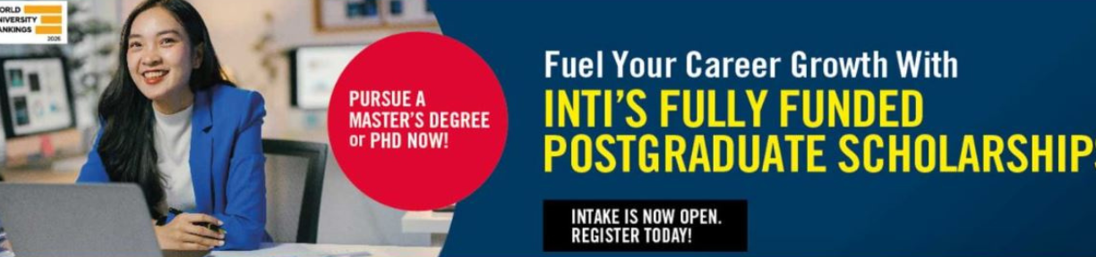 Applications for INTI’s Fully Funded Postgraduate Scholarships are now open. If you are looking for a high-quality postgraduate education in Malaysia with global recognition and flexible learning options, this is your opportunity to take the next step.